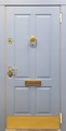 Стальная термодверь с серым МДФ с отбойником и кнокером